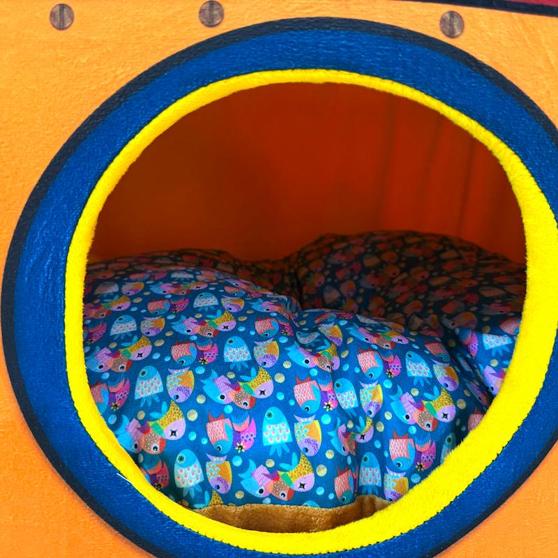 این جای خواب زیردریایی زرد رنگ، حیوان خانگی تان را به سفری رویایی ببرید! این محصول از پارچه مخملی نرم با طراحی جذاب و رنگ های زنده ساخته شده که آن را به مخفیگاه شاد و آرامش بخش تبدیل می کند. تشک داخلی قابل شستشو و فضای راحت آن، خوابی لذت بخش را برای حیوان عزیزتان فراهم میسازد