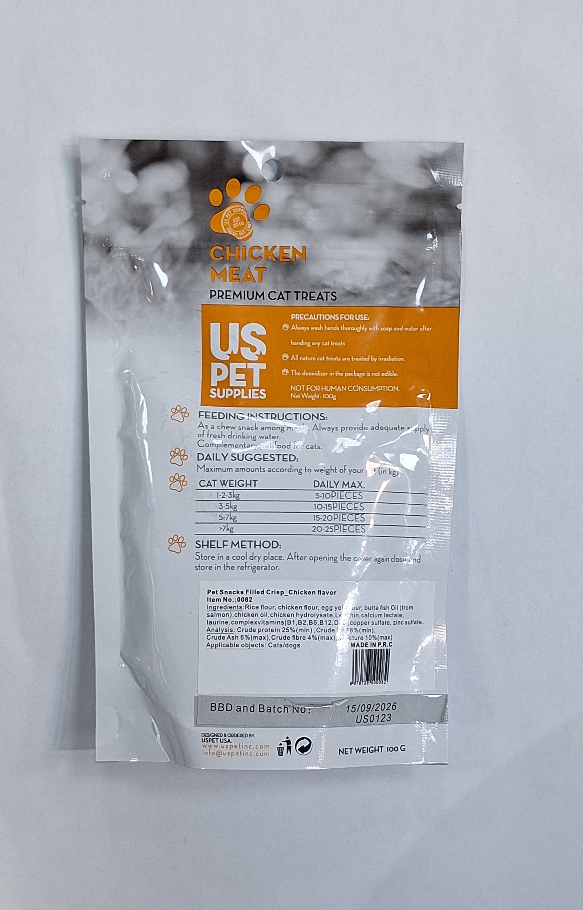 تشویقی گربه US PET مدل بالشتی طعم مرغ ۱۰۰ گرمی